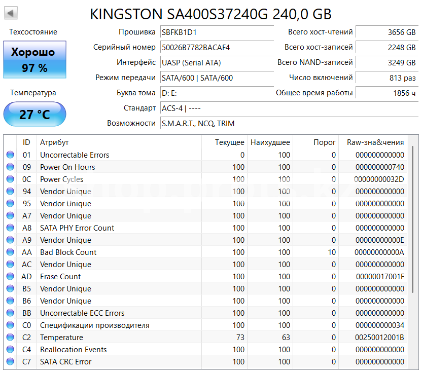 Интерфейс: SATA III (6 Gb/s)